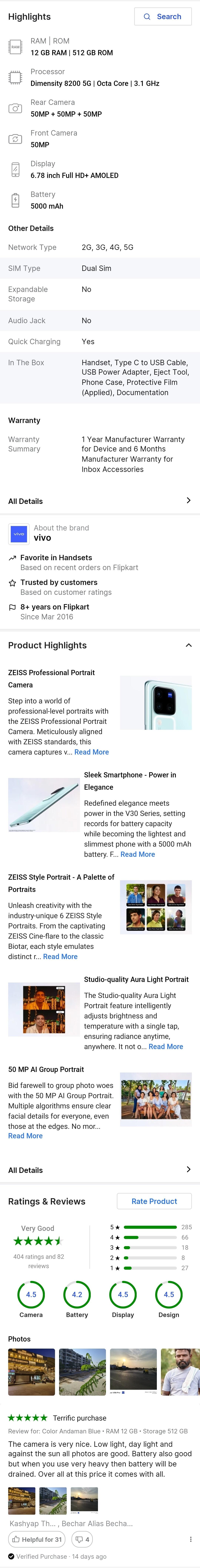 vivo V30 Pro 5G (Andaman Blue, 512 GB) (12 GB RAM)