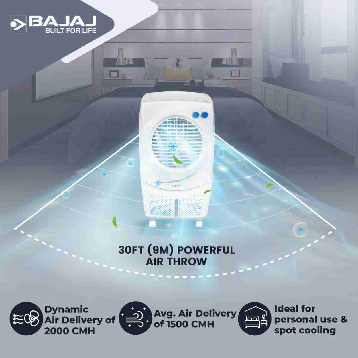 BAJAJ 36 L Room Personal Air Cooler (White, PX97 TORQUE NEW)